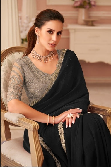 Black Elegant Embellished Sarees for Wedding & Evening Wear UK