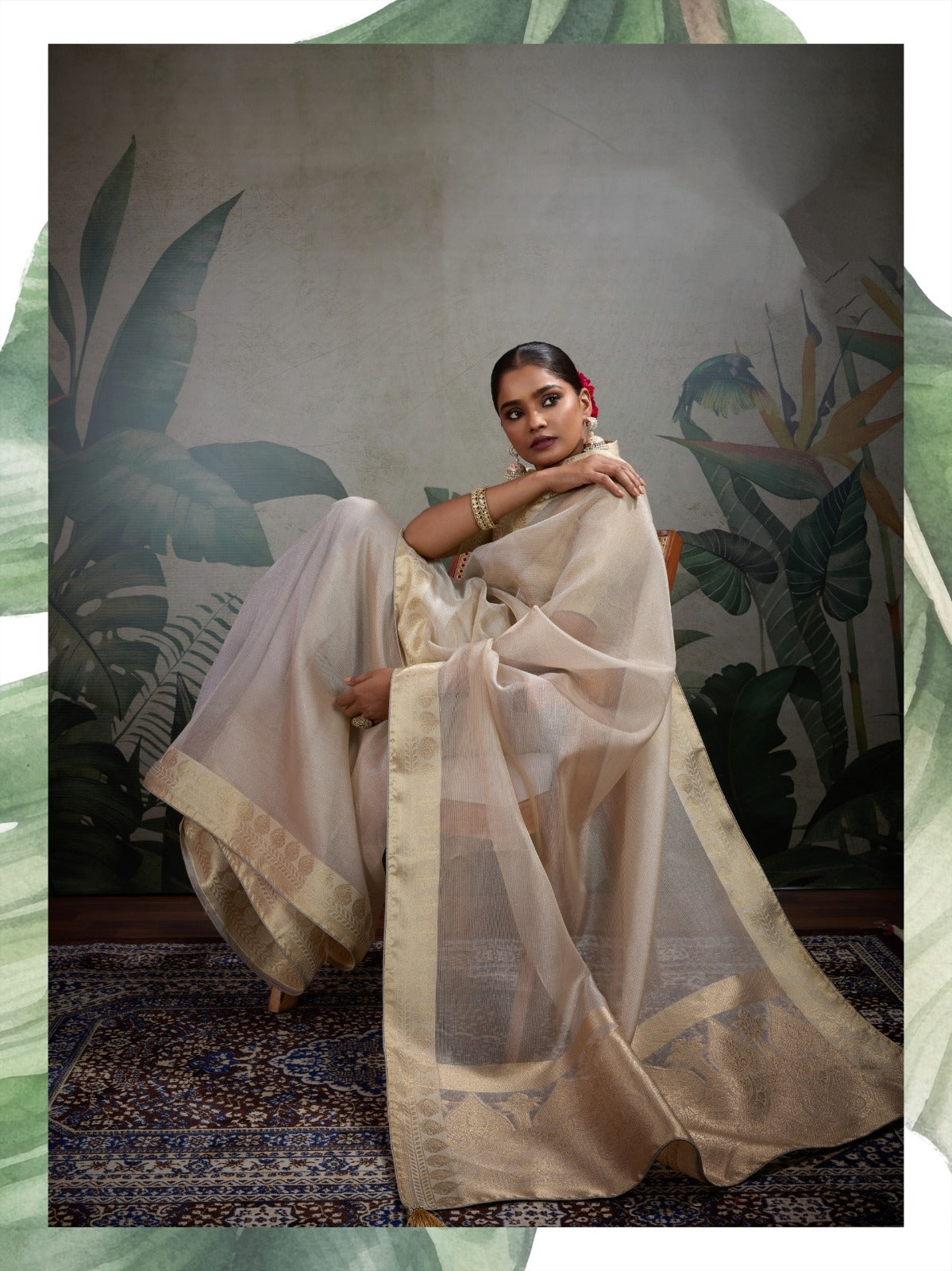 Elegant Pastel Tissue Silk Beige colour Saree with Rich Woven Border – Lightweight Luxury Indian Ethnic Wear