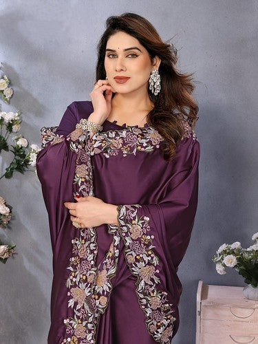 Elevate your traditional wardrobe with this elegant embroidered designer saree, crafted for weddings, festive events, and special occasions. The saree features intricate floral embroidery along the borders and pallu, adding a luxurious and timeless touch to the overall look. Made from smooth, premium-quality fabric, it drapes beautifully and offers exceptional comfort throughout the day.