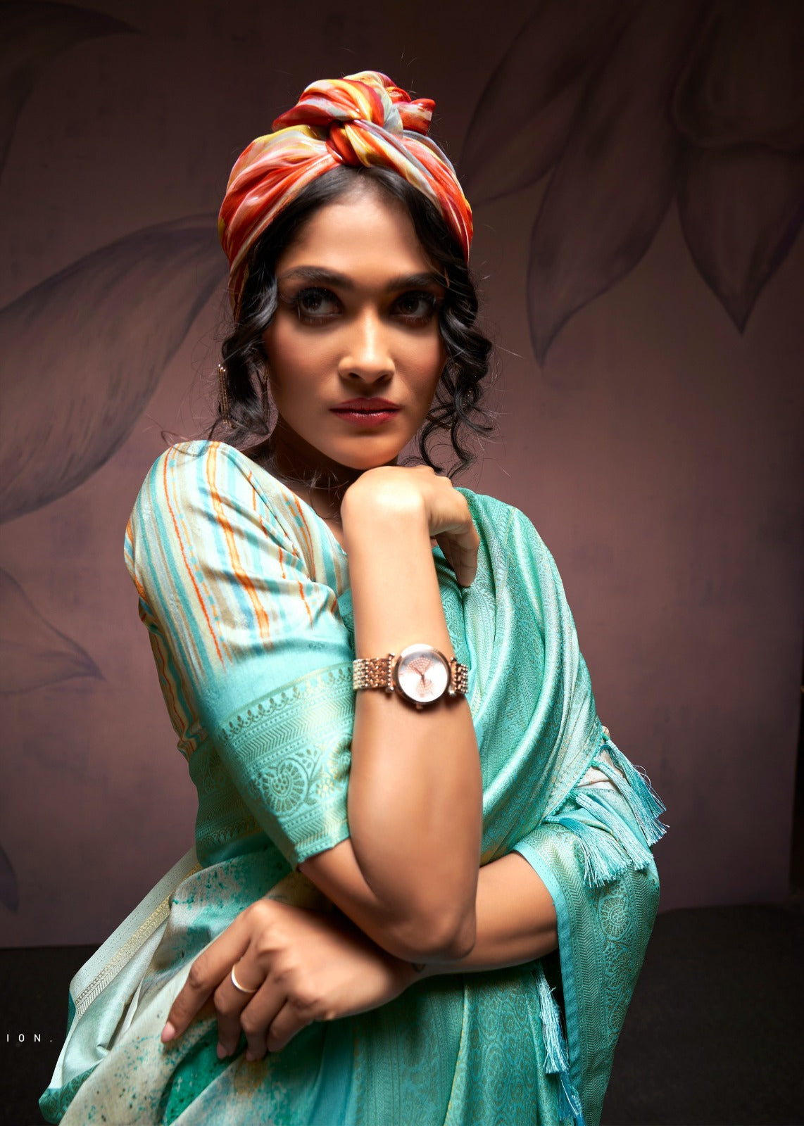 Sea Green Elegant Handloom Silk Saree with Zari Border | Luxury Ethnic Wear for Women