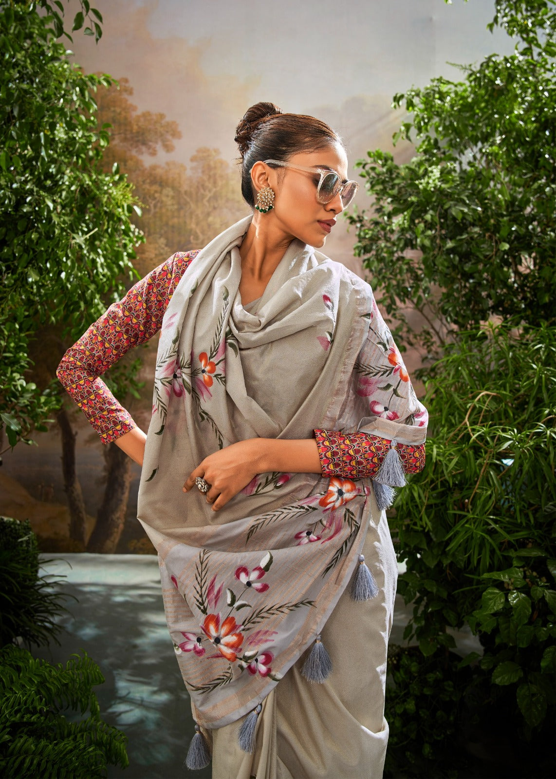 Grey Luxury Floral Woven Saree Collection | Designer Indian Sarees Online UK