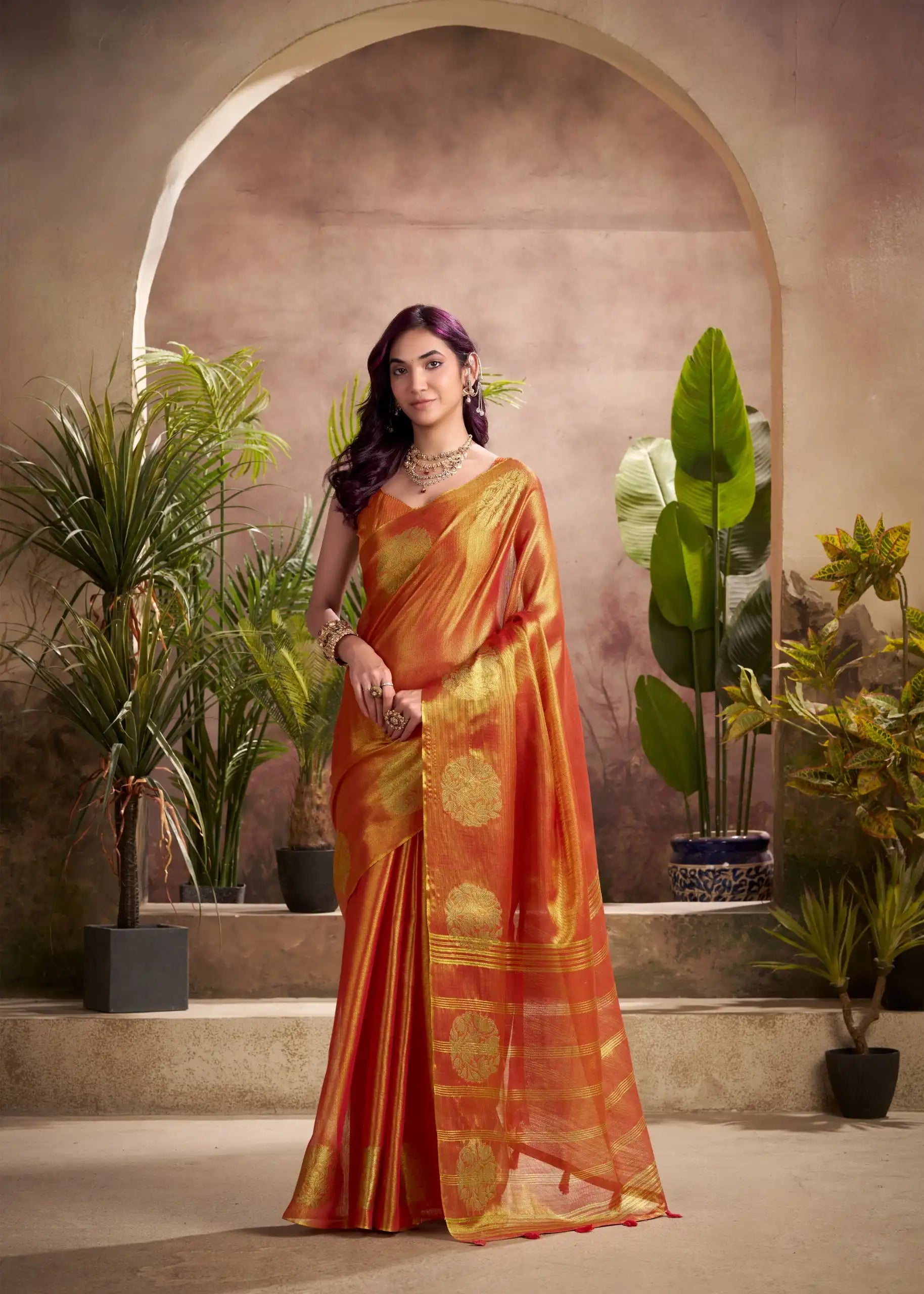 India Silk Orange Tissue Silk Sarees Offer A Perfect Blend Of Tradition And Elegance Crafted From Fine Tissue Silk