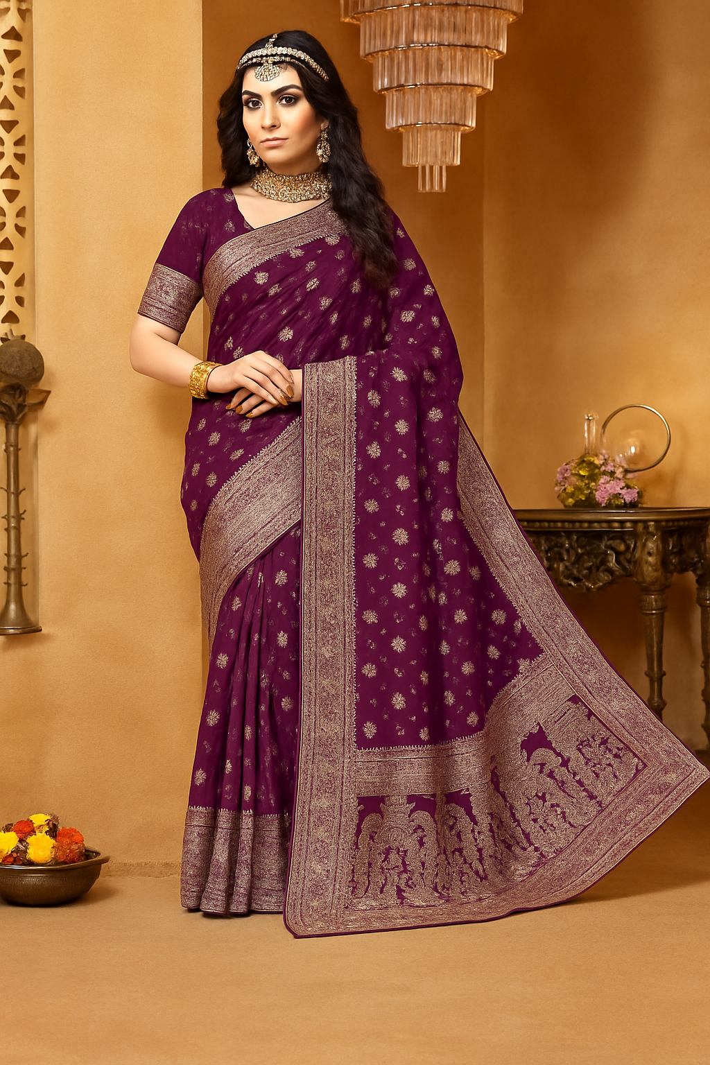 ✨ Rich plum colour with classic Banarasi artistry